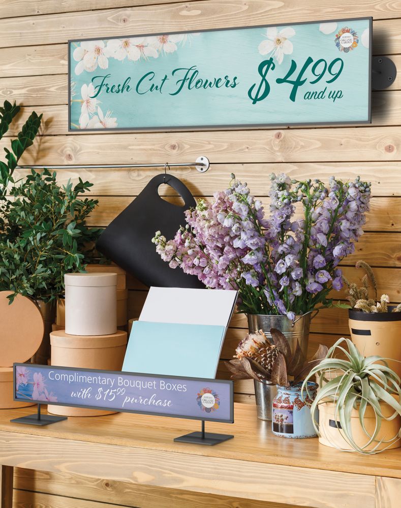 Frame sizes, Bases, Swivels, Stand-offs, Clamps, Mounts, Brackets, Colors We manufacture a wide range of custom Framette steel sign holders. With a 1/2" Profile, the Framette is a thin and light steel frame. Available in custom sizes and in a variety of form factors, from magnetic mount to countertop, slatwall framette graphic frames, framette graphic frames with custom clamps. Bring us your graphic design / visual retail challenges and we're happy to let you know what we can do. Minimum quantities do apply for custom Framette frames.