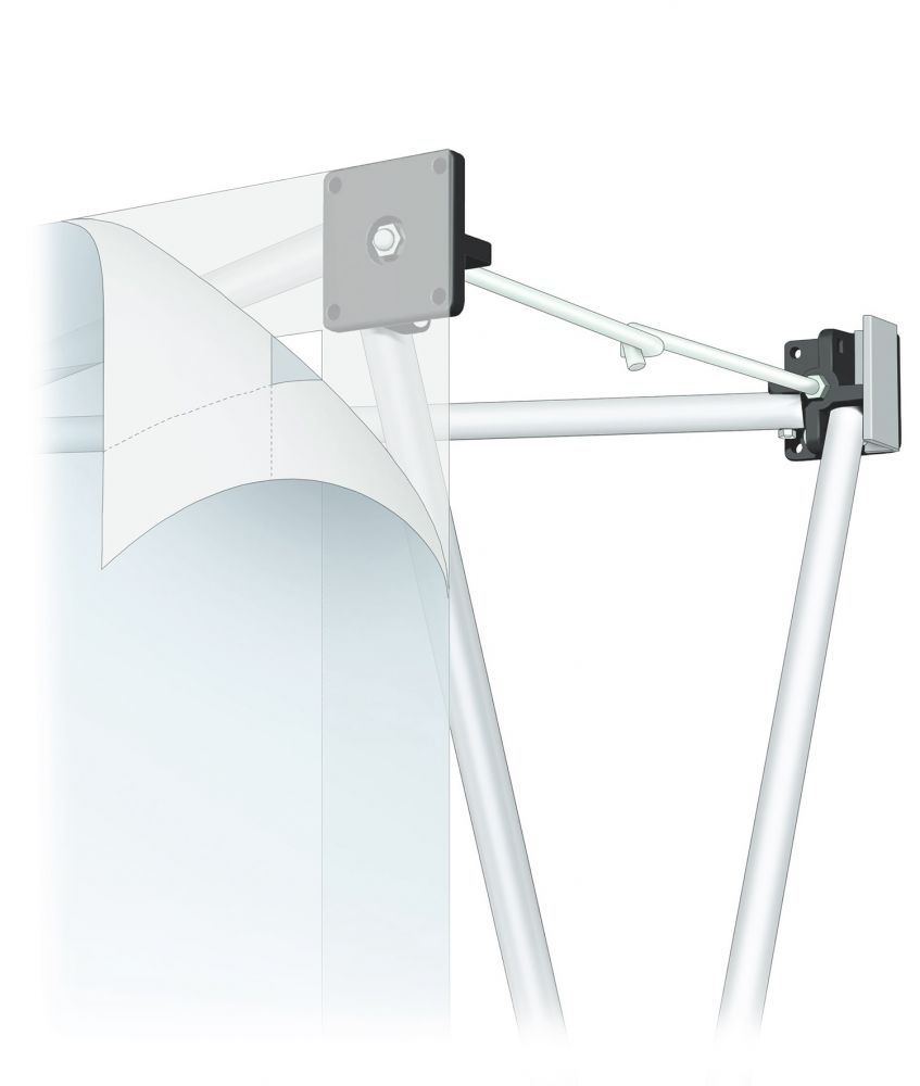 STITCHING: Please keep text or logos a minimum of 2” clear of edges to avoid stitching, Velcro® perimeter is sewn to graphic, allowing it to be attached to frame.