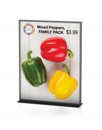 Depending on the type of graphics and utility needed, choose from two base options, either the countertop framette made with steel stem uprights or the topper framette and the frame is welded directly to the base.  When ordering you can also select vertical or horizontal orientation.  Use these steel graphic frames with single or double sided media.